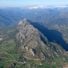 Sierra Crestellina presenta formazioni calcaree con vette grigie che emergono nella vegetazione mediterranea e nelle valli coltivate circostanti.