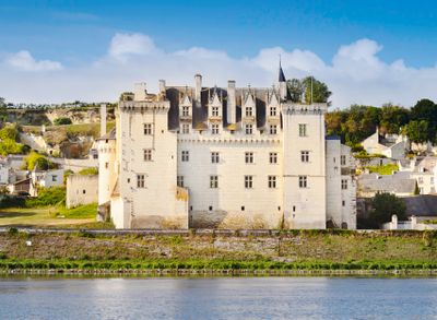 Il castello in pietra calcarea sorge direttamente dal letto della Loira alla confluenza con il fiume Vienne, mostrando elementi gotici e rinascimentali.