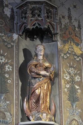 Vierge au croissant, Skulptur der Mondsichelmadonna in der Kirche St-Pierre in Yzeure, einer französischen Gemeinde im Département Allier