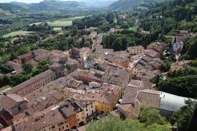 Le torri della fortezza si ergono su tre colli separati, creando una sagoma visibile da vari punti della campagna romagnola.
