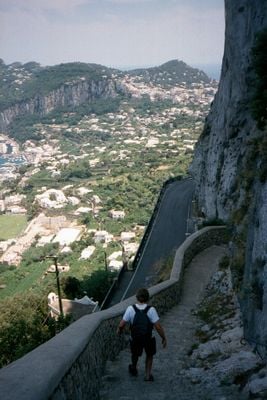La Scala Fenicia comprende 921 gradini in pietra intagliati nella roccia, collegando il porto di Marina Grande con la città alta di Anacapri.