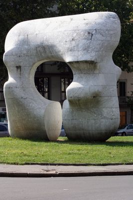 Henry Moore selezionò trenta blocchi di marmo dalle cave del Monte Altissimo nel 1974 per creare questa scultura monumentale nel luogo dell'antica Porta Fiorentina.