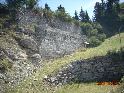 I resti del forte sono visibili scendendo dalla seggiovia di Valbione, offrendo una vista sulla posizione difensiva che domina il Passo del Tonale.