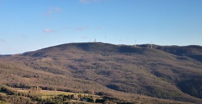 La vetta ospita sette turbine eoliche che generano energia rinnovabile offrendo punti di osservazione verso il Lago di Santa Luce.