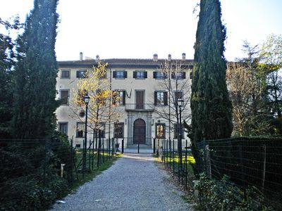 La villa sorge all'interno di un parco monumentale circondato da un canale che definisce i confini della proprietà vicino a Firenze.