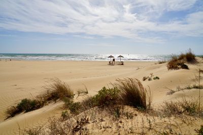 La posizione della spiaggia crea condizioni di vento ottimali che attirano appassionati di windsurf da tutta Europa durante primavera e autunno.
