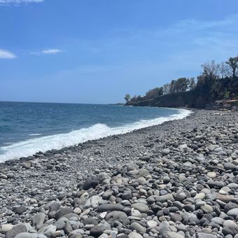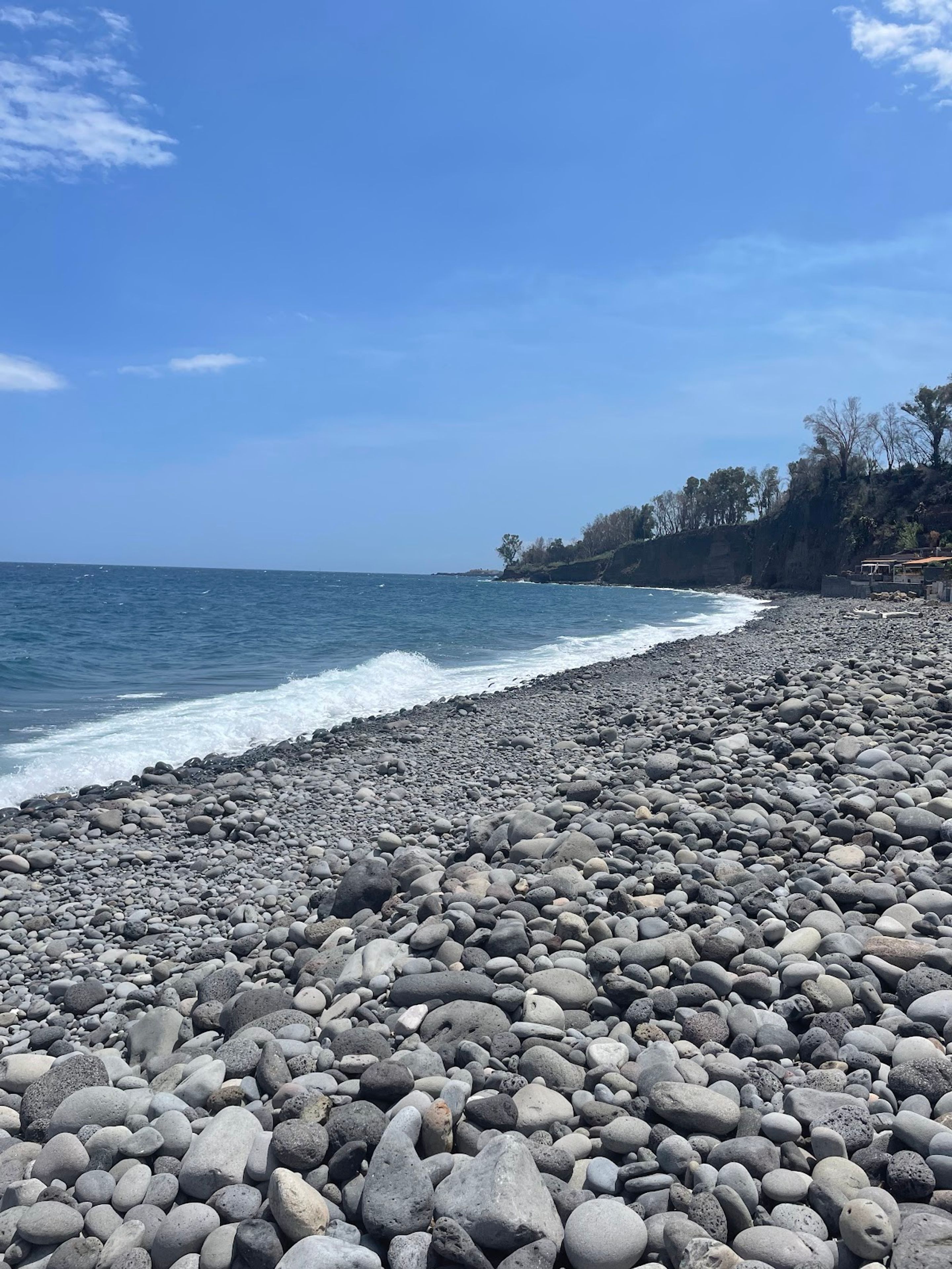 Le pietre vulcaniche della Spiaggia Praiola provengono dalle antiche eruzioni dell'Etna, che hanno modellato l'intero paesaggio costiero della Sicilia orientale.