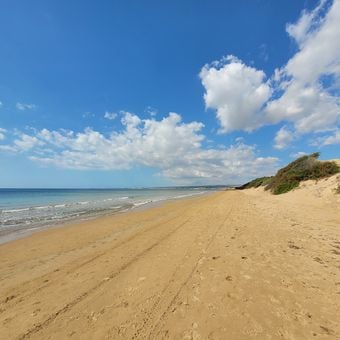 La spiaggia di sabbia dorata si estende per tre chilometri lungo la costa sud-orientale della Sicilia tra Ispica e Pozzallo, con dune naturali.