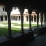 Il chiostro quadrilatero presenta elementi architettonici distinti, con colonne che sostengono archi ed entablature con variazioni nei disegni dei capitelli.