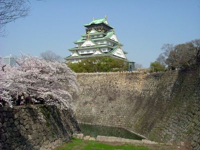 Il punto più alto raggiunge 38 metri sul livello del mare alla base della torre principale del Castello di Osaka.