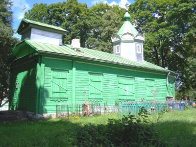 La combinazione di architettura lituana in legno ed elementi di design ortodosso orientale crea una struttura religiosa distintiva a Ukmergė.