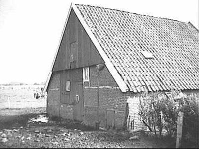 Vakwerkschuurde links van de boerderij staande vakwerkschuur