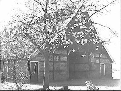 Schuur is opgetrokken onder een zadeldak met rode muldenpannen, windveren en makelaars