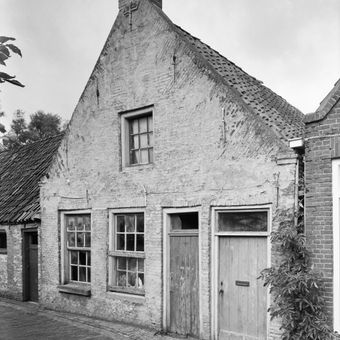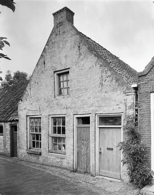 Pand onder zadeldak tegen puntgevel met vlechtingen langs de zijden en aanzettreden