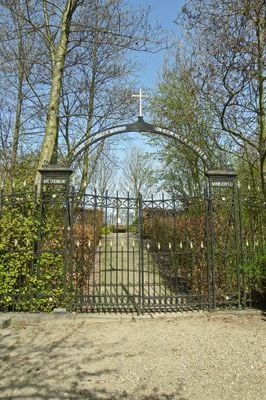Toegangshek tot de begraafplaats, behorend bij het religieuze complex Johannes de Doper en gelegen op het westelijk deel van het complex, Rijksmonument op Jisperweg achter 56