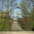 Toegangshek op boogbrug in rode baksteen met natuursteen waar de brugpijlers zijn ingelaten
