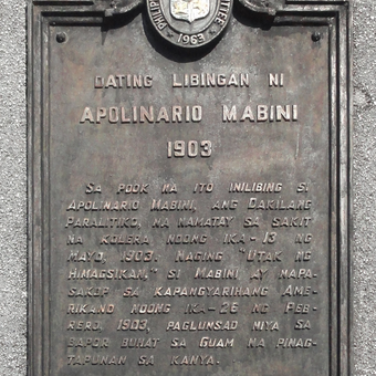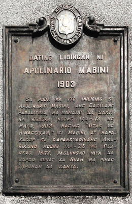 Former Burial Site of Apolinario Mabini historical marker, NHCP historical marker for the former burial site of Apolinario Mabini