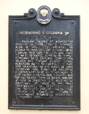 Potenciano V. Gregorio Sr. historical marker, NHI historical marker for Potenciano Gregorio