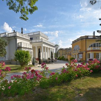 Il parco termale del villaggio presenta specifiche varietà di alberi, inclusi tigli antichi, pini neri, sicomori e magnolie.