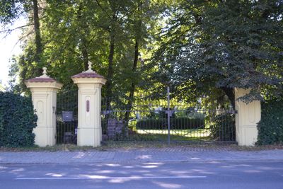 Ogrodzenie z bramą wjazdową z kratą z herbem Zamojskich (pochodzącą z Różanki)