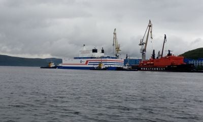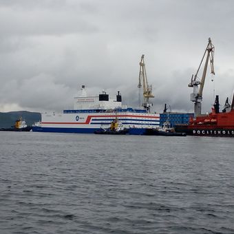 La centrale nucleare galleggiante Akademik Lomonosov misura 144 metri di lunghezza e contiene due reattori KLT-40S che generano 70 megawatt di elettricità.