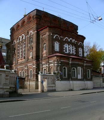 La Chiesa di Theotokos presenta architettura del Rinascimento russo con decorazioni elaborate, motivi tradizionali e una facciata religiosa in via Schepkina.
