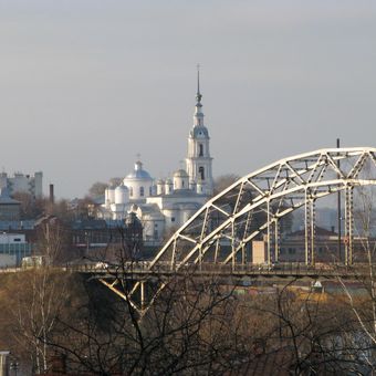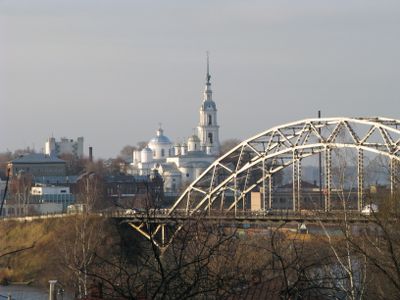 Nikolskii bridge, Ponte in acciaio sul fiume Volga a Kineshma, Russia
