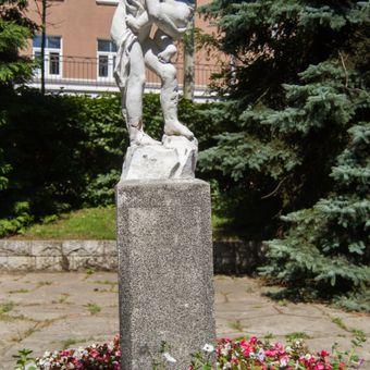 Жилой дом с угловой скульптурной композицией «Рыбак Раушена» (Светлогорск)