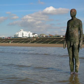 L'installazione di Antony Gormley 'Another Place' include 100 figure in ghisa posizionate lungo la spiaggia di Crosby.