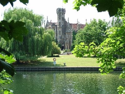La dimora presenta architettura gotica vittoriana con elaborate opere in pietra, alte finestre e intagli dettagliati su una tenuta di 14 ettari lungo il Tamigi.