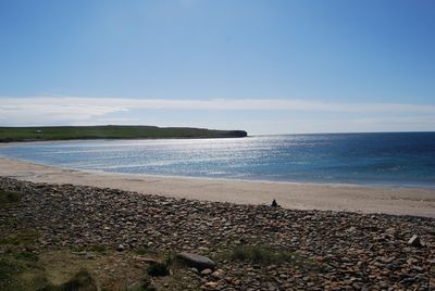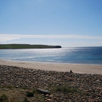La Baia di Skaill si estende lungo la costa occidentale di Mainland Orkney, presentando un'ampia distesa di sabbia che incontra l'Oceano Atlantico.