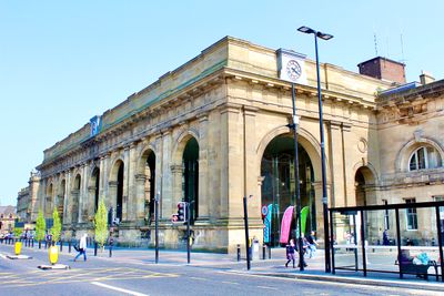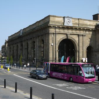 La stazione di Newcastle presenta architettura neoclassica con dettagli dorici ornamentali sui suoi 12 binari, fungendo da centro trasporti del nord-est dell'Inghilterra.