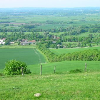 A barrow field, a bowl barrow and a dewpond on Bostal Hill