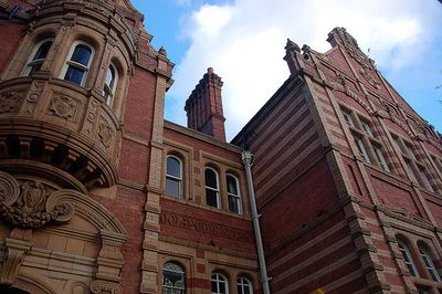 L'edificio scolastico presenta un'architettura rinascimentale settentrionale con mattoni rossi Cattybrook, mattoni gialli e decorazioni in terracotta.
