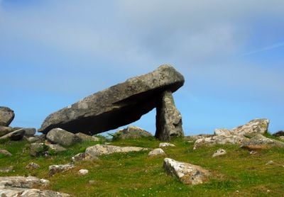 Coetan Arthur, Tomba a camera neolitica vicino a St David's Head, Pembrokeshire, Gran Bretagna.