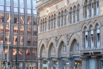 La Borsa di Glasgow sorge all'intersezione di Nelson Mandela Place e Buchanan Street, con elementi architettonici gotici veneziani su cinque piani.