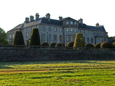 La dimora georgiana presenta ali estese, una torre dell'orologio e giardini formali distribuiti su diversi ettari di terreno paesaggistico.