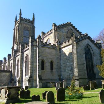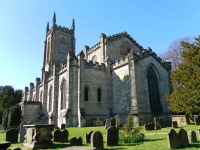Dopo che un fulmine distrusse la struttura originale dell'XI secolo nel 1772, l'architetto James Wyatt completò l'attuale chiesa nel 1789.