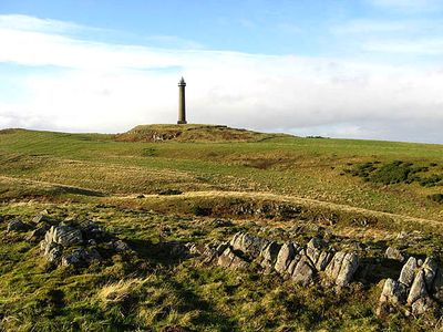 Il Monumento di Waterloo si innalza come una colonna dorica in pietra di 46 metri nel punto più alto di Penielheugh.