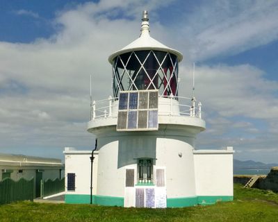 La torre cilindrica in pietra con balcone e lanterna si eleva per 11 metri a un'altitudine di 38.9 metri sul Mare d'Irlanda.