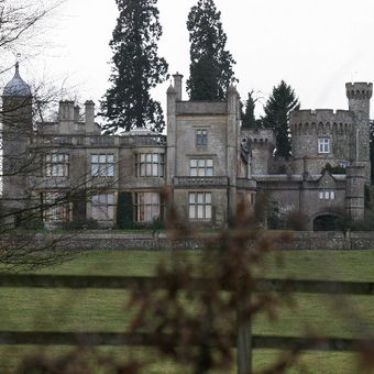 La residenza principale, costruita tra il 1815 e il 1821, presenta uno stile architettonico Tudor-Gotico irregolare con torri e merlature.