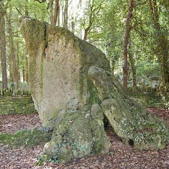 Hoar Stone portal dolmen situated in Enstone Firs, dolmen in Enstone, Oxfordshire, England, UK