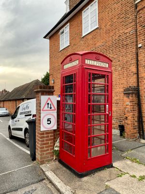 K6 Telephone Kiosk Outside Garages, 12, Northway, K6 telephone box in Barnet, Greater London, UK