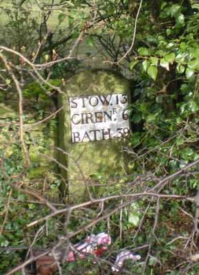 Milestone Circa 150 Metres North Of The Hare And Hounds, milestone in Chedworth, Cotswold, Gloucestershire, UK