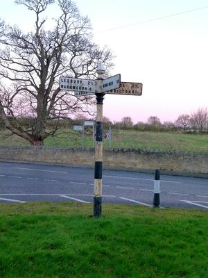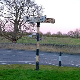 Signpost At Juntion With Station Road, signpost in Longhoughton, Northumberland, UK