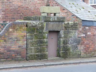 Lock up on the end of the barn at Weldon House, village lock-up in Kelsall, Cheshire West and Chester, Cheshire, UK