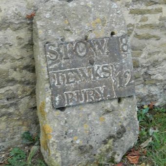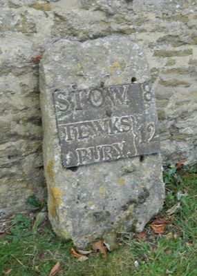 Milestone, By Gable Of Pike Cottage, Stumps Cross, milestone in Stanway, Tewkesbury, Gloucestershire, UK