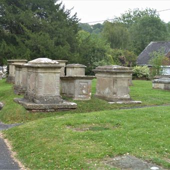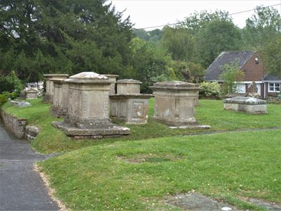 Group Of 10 Monuments In Churchyard, South Of South Aisle, Church Of All Saints, monument in West Lavington, Wiltshire, UK