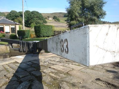 Rochdale Canal Lock 33 Bottomley Lock, lock in Todmorden, Calderdale, West Yorkshire, UK