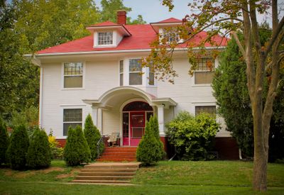 Situata al 332 East Davenport Street, questa casa Colonial Revival di due piani presenta ampie finestre a ghigliottina e una sporgenza centrale.